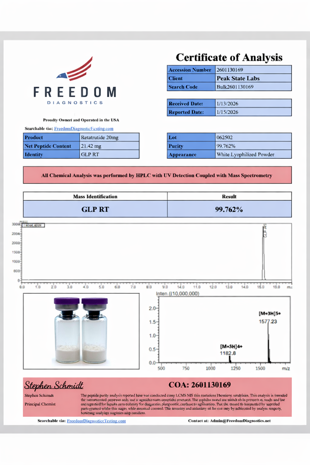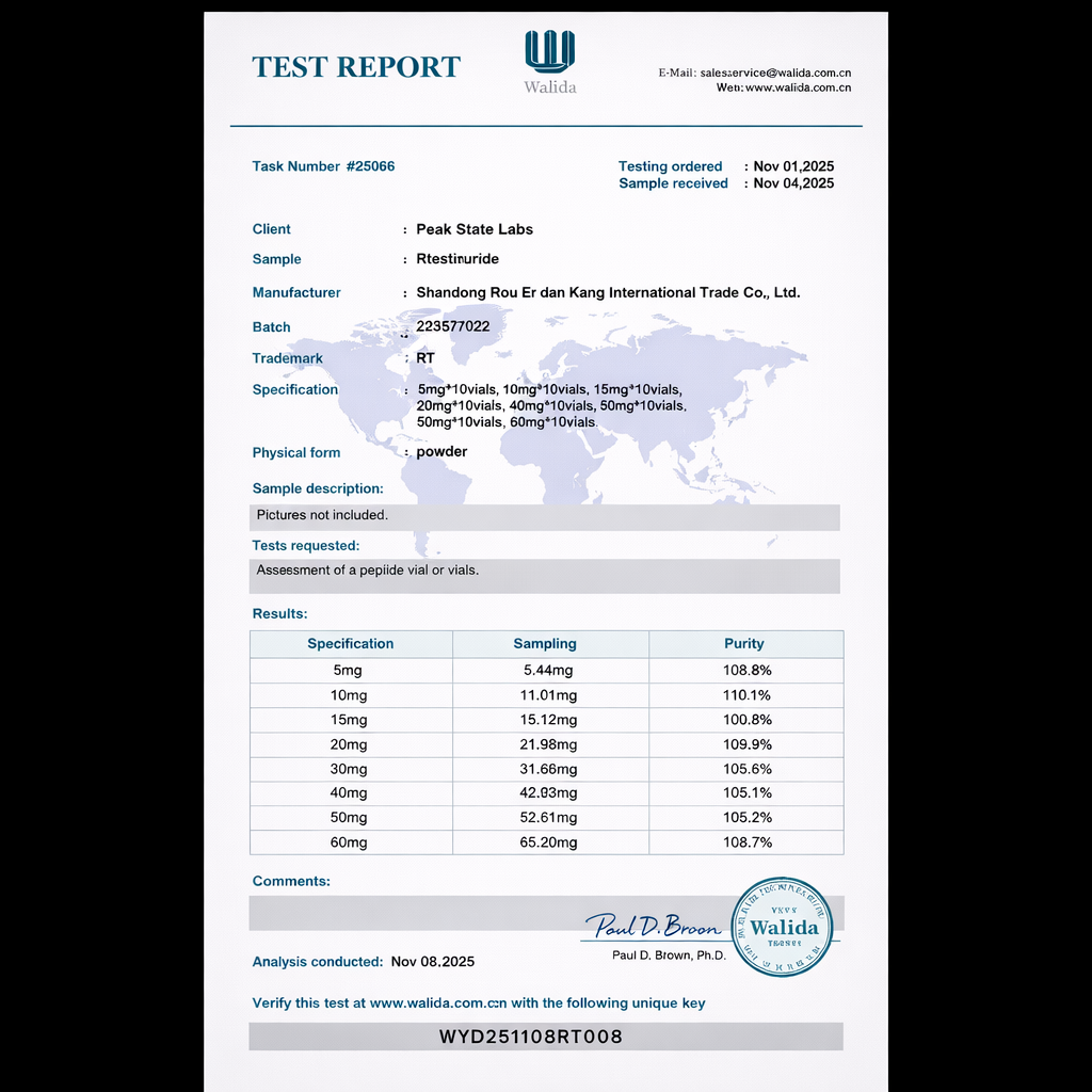 Yes. Every batch includes full purity test documentation from independent third-party laboratories, verifying 99%+ purity for all compounds.